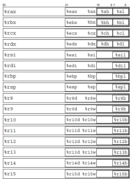 It turns out that modern computers require more than a physical memory to operate. Inside the CPU, there exists a small piece of memory called registers. Registers are extremely fast, because it can be directly accessed by the CPU. Modern x86β64 processors have 16 general-purpose 64-bit registers, whose names can be overwhelming to understand at first. So Iβll provide some historical context to help you understand them better. But first, the overall layout of the x86β64 registers: